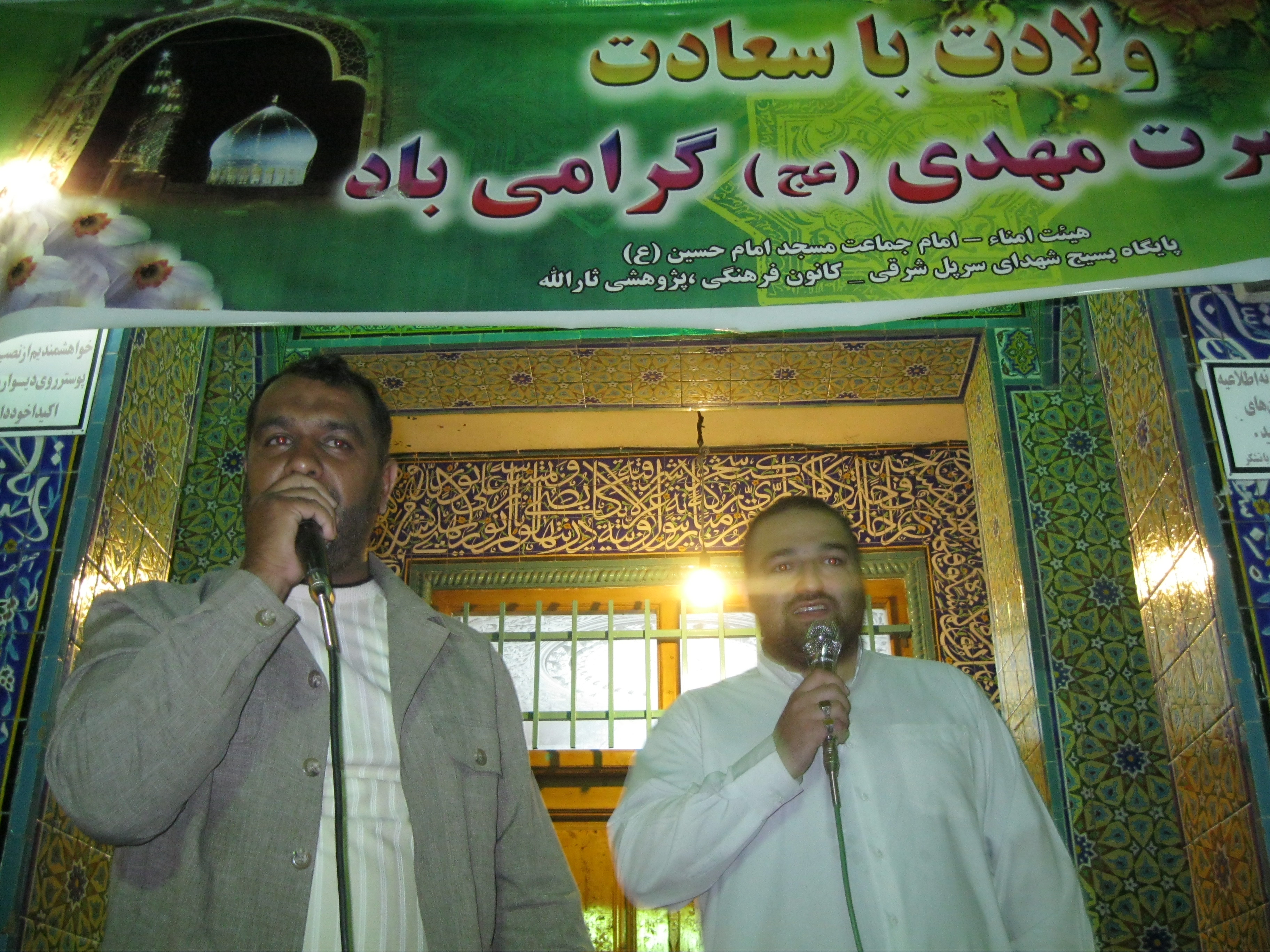 به مناسبت ولادت حضرت مهدی (عج) بعد از نماز مغرب و عشاء در حیاط مسجد مراسم براگذار شد که در شروع مراسم جناب آقای سلمان زادگان با خواندن مولودی مجلس را شکوفا کرده و در ادامه از حضار پذیرایی به عمل آمد ، سپس به عنوان هدیه به چند نفر از حضار که نامشان مهدی بود هدیه نا قابلی داده شد . تصاویر زیر بیانگر نحوه برگذاری از مراسم میباشد :
