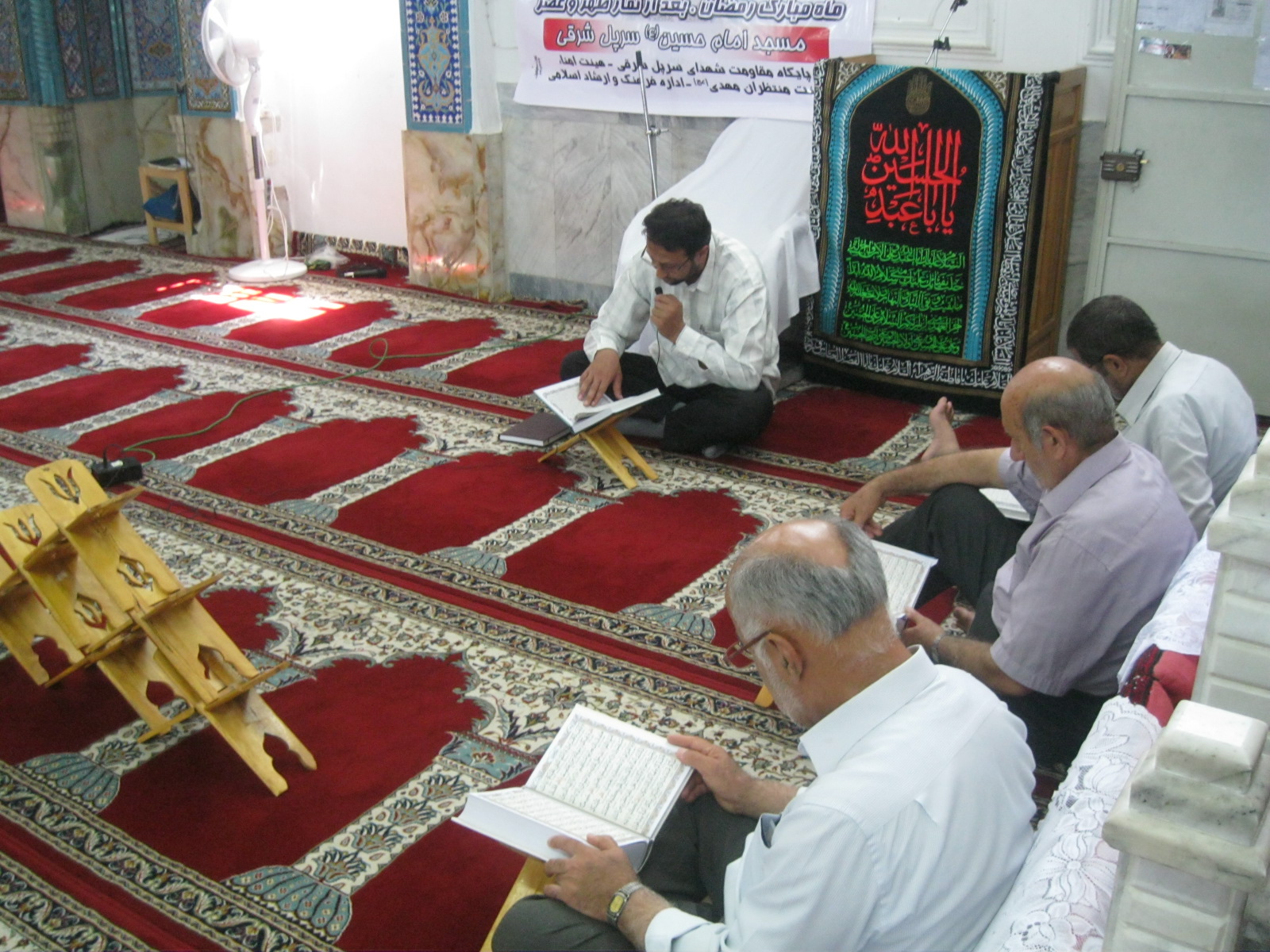 هیئت دارالقرآن پایگاه ویژه مقاومت شهدای سرپل شرقی در ایام ماه رمضان هر روز بعد از نماز ظهر و عصر یک جز از قرآن کریم را تلاوت می کردند تصاویر زیر بیان گر این عمر میباشد :