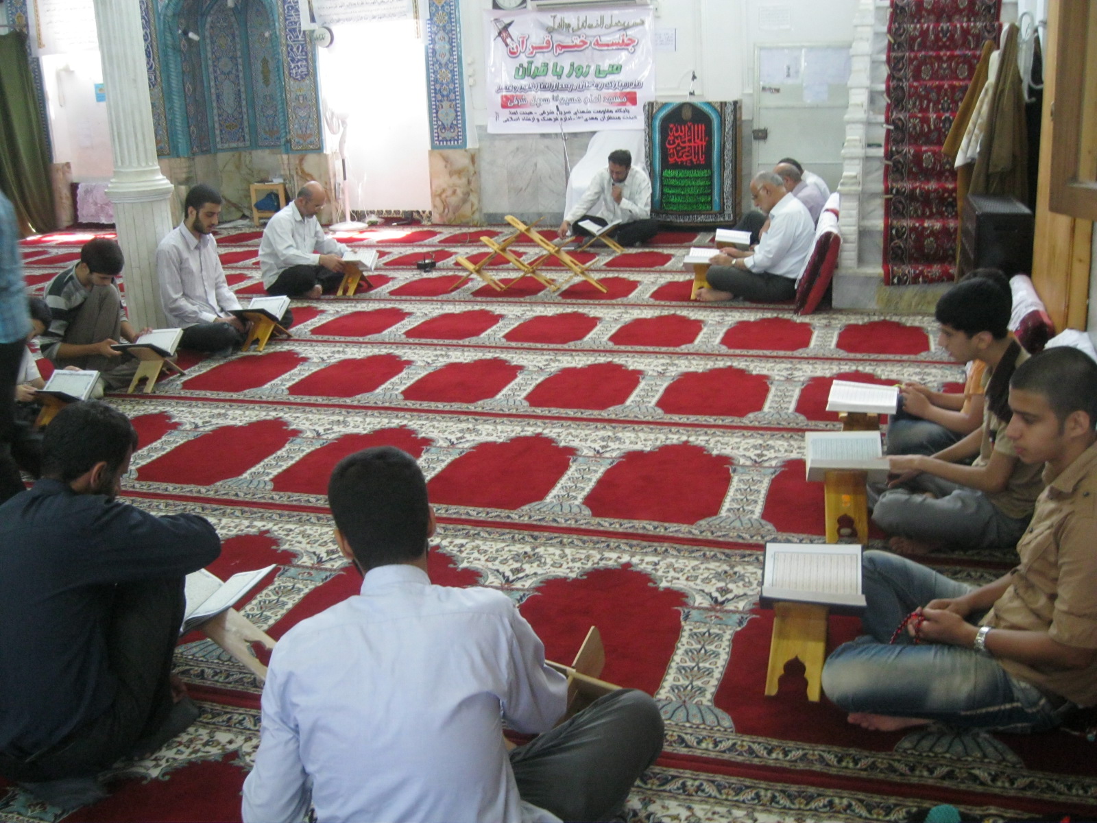 هیئت دارالقرآن پایگاه ویژه مقاومت شهدای سرپل شرقی در ایام ماه رمضان هر روز بعد از نماز ظهر و عصر یک جز از قرآن کریم را تلاوت می کردند تصاویر زیر بیان گر این عمر میباشد :
